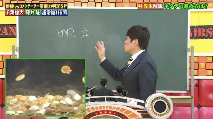 「ホタテ」を漢字で書く問題では、林修先生が「ホタテ=帆立」の漢字の由来を説明しました。