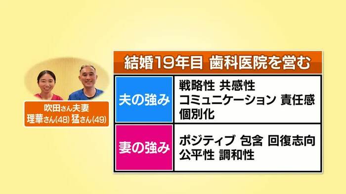 番組では、「ストレングス・ファインダー」を生活に取り入れている結婚19年目の吹田夫婦も取材。