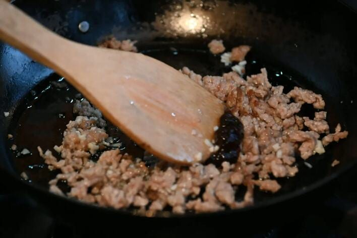 ポイント① ひき肉をしっかり炒め、うま味を引き出す