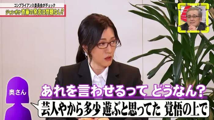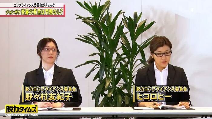 最後は、コンプライアンス委員会へ。斉藤さんは、不適切な発言がなかったか、ヒコロヒーさんと野々村友紀子さんからチェックを受けました。