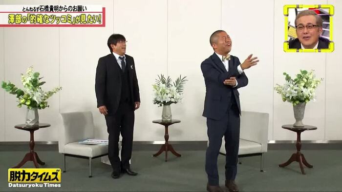 岩井さんからの突然のフリに澤部さんは苦笑い。渋々立ち上がるも、スイッチを切り替えて…。