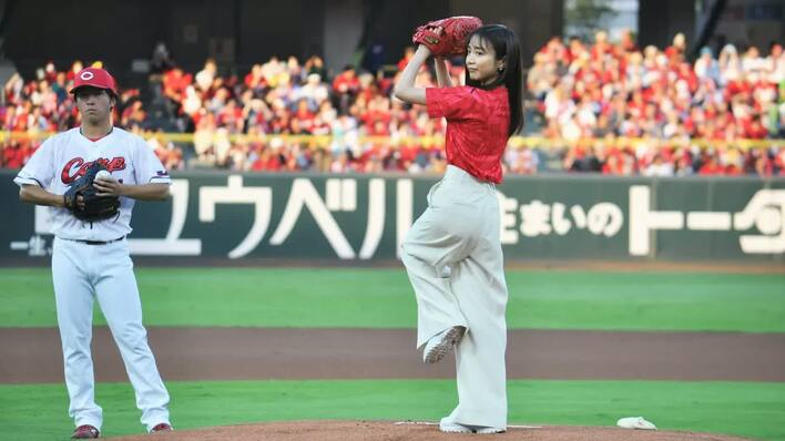 佐久間みなみフジテレビアナウンサーが、始球式に登場しました。