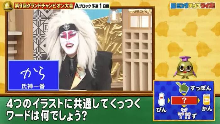 氏神さんの答えは、「から」。確かに「ぴんから」兄弟はいますが…。残念ながら不正解。