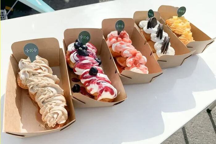 コラボスイーツは韓国で人気のねじり揚げドーナツに、クリームをトッピングした「クァベギ」が登場。