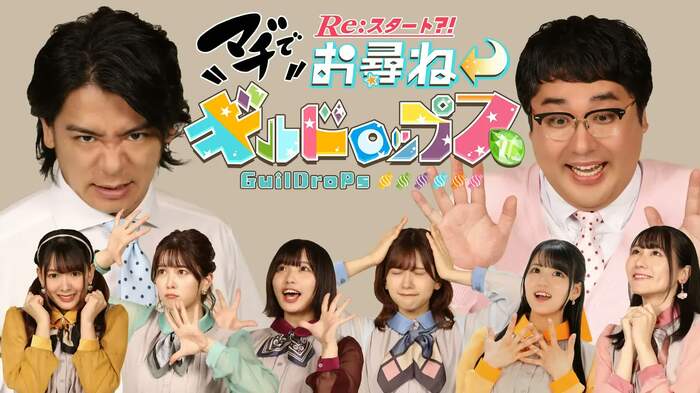 マヂカルラブリー(野田クリスタルさん、村上さん)と声優ユニットのギルドロップス(江原裕理さん、山田麻莉奈さん、ながえゆあさん、小坂井祐莉絵さん、那谷柊優さん、比奈本しおんさん)が、アニメ・漫画など二次元業界で活躍しているゲストを番組に招き、業界の裏話や秘蔵話をお尋ねしていくトークバラエティ『マヂで Re;スタート!?お尋ねギルドロップス』。