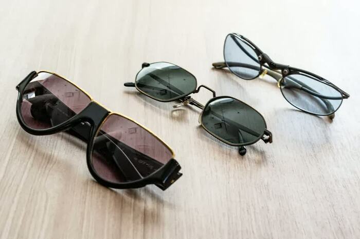 一番奥は、「愛人/ラマン」(1992年)などに出演していた香港のレオン・カーフェイと「恋戦。OKINAWA Rendez-vous」(2000年)で共演したときに、僕の持っていた物とサングラスを交換したものです。