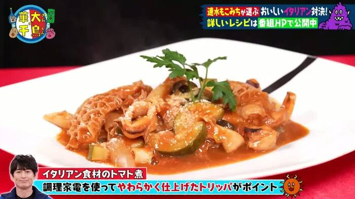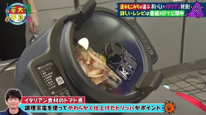 大吉さんは、調理家電を使って「イタリアン食材のトマト煮」を作りました。短時間でやわらかく仕上げたトリッパ(牛の胃袋)がポイントです。