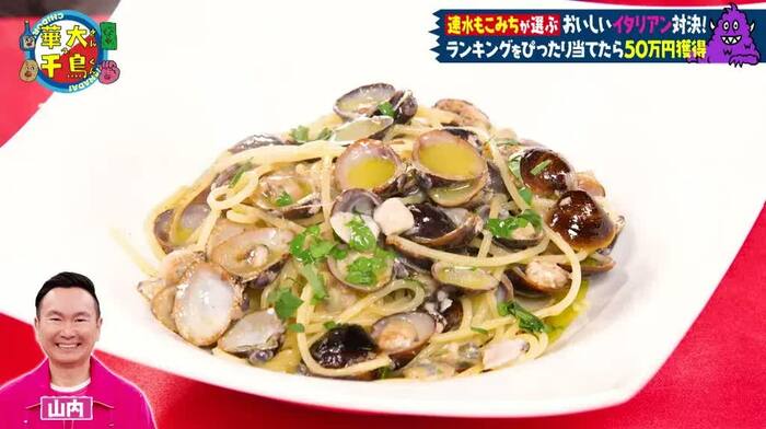 濱家さんの「ちなみに、シジミパスタ3人前を作るのに、シジミを2kgつかってました!」という告げ口(!?)には「あー、そうですか。そら少ないや」と意外な反応が返ってきて、みな爆笑。