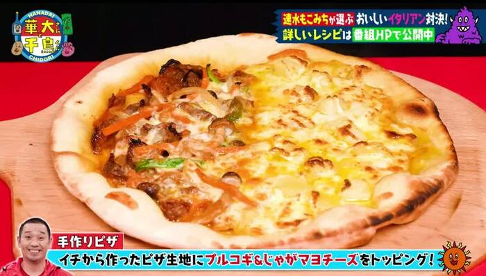 大悟さんは、イチから作ったピザ生地に、甘辛いプルコギ&ほくほくのじゃがマヨチーズをトッピング。ハーフアンドハーフの「手作りピザ」で勝負しました。