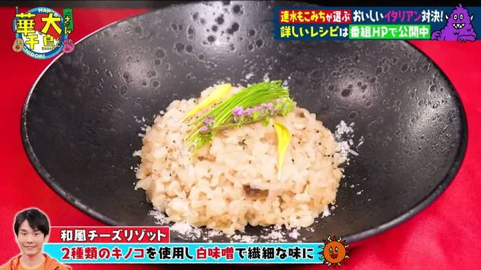 濱家さんが作ったのは、2種類のキノコと白味噌を使った「和風チーズリゾット」。繊細な味に仕上げました。