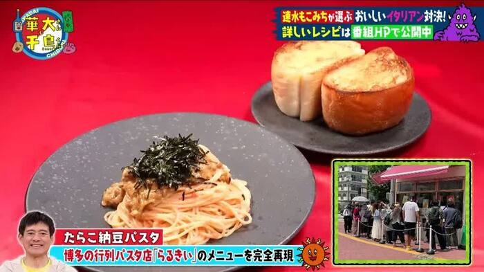 華丸さんが作ったのは、博多の大人気イタリア料理店「らるきい」から食材を取り寄せて完全再現した「たらこ納豆パスタ」。