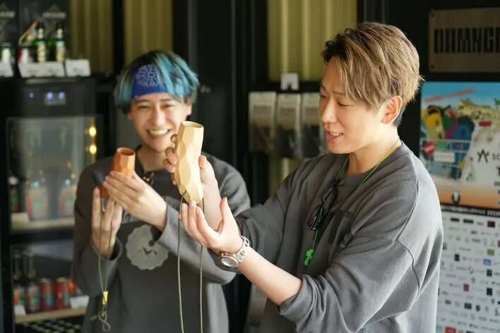 最近ハマっているアニメ『ヴィンランド・サガ』に登場する「置けないコップ(=コップの下の部分が尖っているので、飲み物を必ず飲みきらないといけない形状)」を発見した八乙女さんは、「これ慶ちゃんさ、色違いでお揃いで買ってよ」とおねだりする一幕も。
