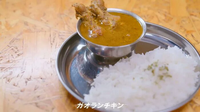 ガヤさん:ガオランはマラーティー語で田舎風という意味です。カレーのベースに玉ねぎ、焦がしたドライココナッツ、パクチーを入れています。玉ねぎの甘味、ココナッツの甘味と焦げの美味しい苦み、パクチーの香りがベースとなっていて、他のカレーとは違う味になっています。