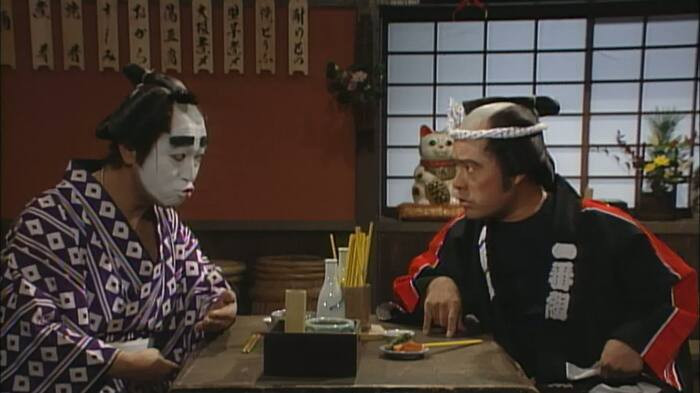 新選組をもとに、時代劇の映画撮影をテーマにした加藤さんと志村さんの軽妙なやりとりが大きな笑いを呼びます。