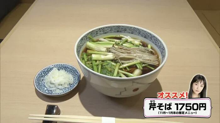 奈緒さんのおすすめは、「芹そば」(1750円)。※11月〜1月末の限定メニュー