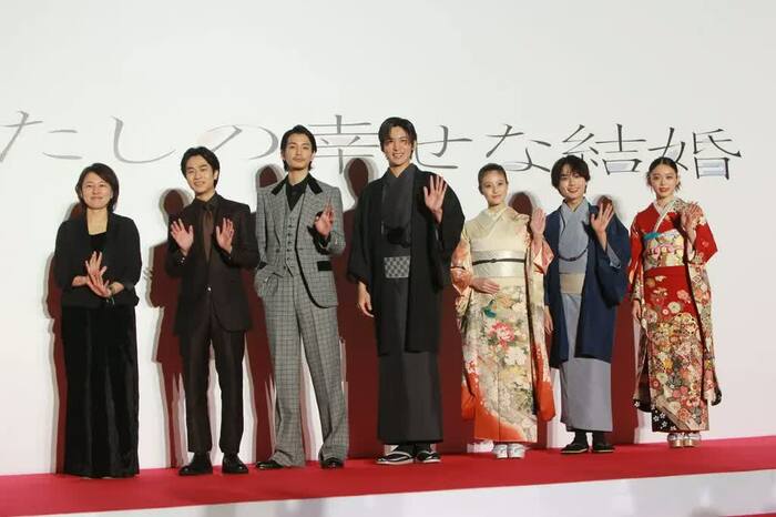 2月1日、目黒蓮さん(Snow Man)が主演を務める映画「わたしの幸せな結婚」のプレミアイベントが行われ、目黒さん、今田美桜さん、渡邊圭祐さん、大西流星さん(なにわ男子)、前田旺志郎さん、髙石あかりさん、塚原あゆ子監督が登壇しました。