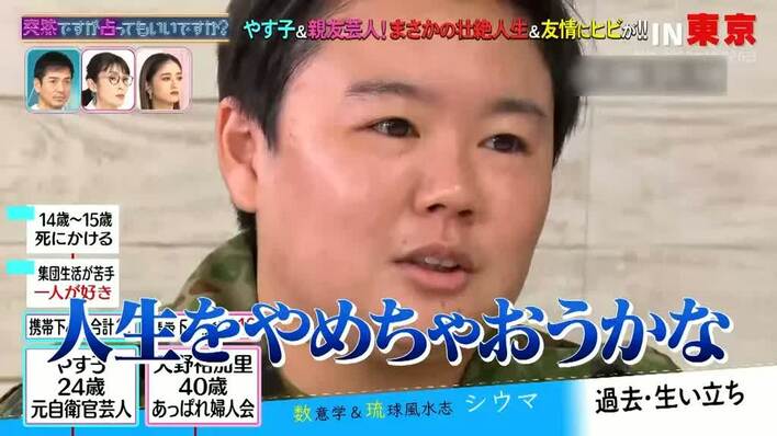 当時、やす子さんの地元では、その条件を満たす就職先はパチンコ店か自衛隊しかなく、パチンコ店の採用に落ちたため、「助けてくれ」という思いで自衛隊に入ったと語りました。