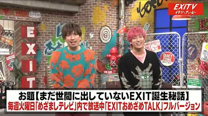 「そもそものコンビ名の由来」について、兼近さんは「日常でつらい思いをしてる人たちへ、退屈な日常からの出口・非常口になれるようなコンビに」と名付けたと話していますが、実際には「EXILEっぽい名前にしようぜ!」と、EXILEファンのりんたろー。さんが言い出したからだと語りだします。