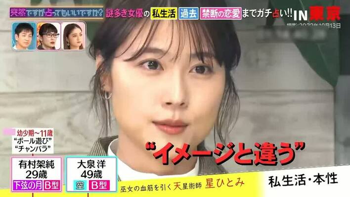 11月28日(月)放送の『突然ですが占ってもいいですか?』(フジテレビ)で、大泉洋さんと有村さんが、星ひとみさんに占われました。