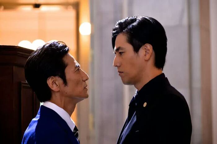 午後になって御子柴のライバルとなる岬役・津田寛治が合流。岬が、御子柴や洋子と初めて対面するシーンでは、テミス像にもたれかかるように待ち伏せする津田のその体勢や表情だけで、御子柴と敵対関係であることを見事に表現。