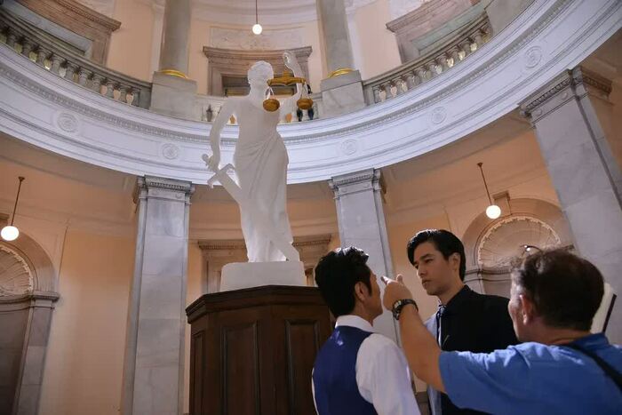 9月下旬に行われたポスター撮影からさかのぼること10日ほど前。クランクインは、上野の表慶館を裁判所の廊下に見立てて行われた。