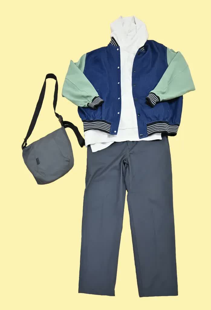 想が着ているサイズだと、僕にはだいぶ大きそうなので、ボトムスは想みたいにワイドなデザインではなく細身のものか、クロップド丈のものを合わせて、バランスを取ると思います。色は黒かな。