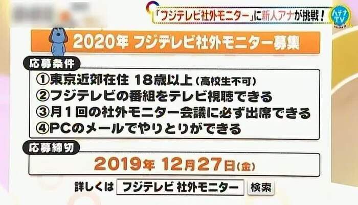 社外モニターとは、フジテレビの番組を見て、感想などをリポートする一般視聴者のことだ。