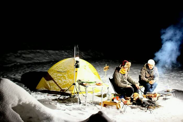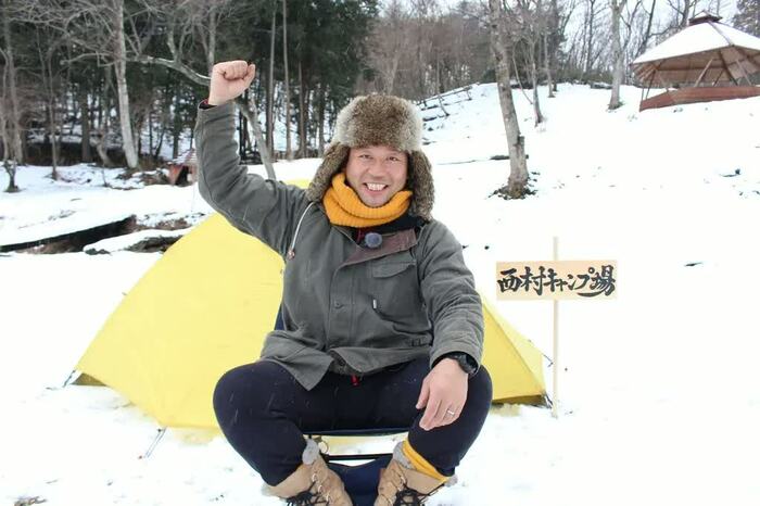 最後の夜には、雪山で念願の雪中キャンプ。ご機嫌な様子でキャンプ飯をつくっていた西村のもとへ、キャンプ仲間のヒロシがサプライズ登場。