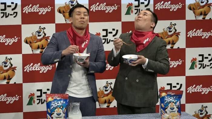 2019年のM-1グランプリで優勝したミルクボーイの駒場孝と内海崇が、ケロッグ公式の応援サポーターに就任し、1月28日にその就任式が都内で行われた。