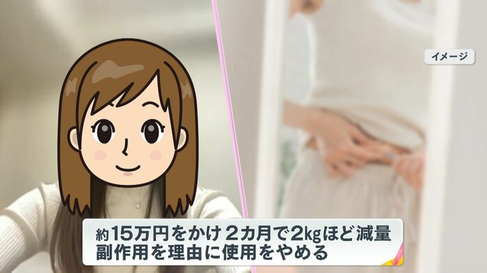 女性は約15万円かけて、2カ月間で2kgほど減量。しかし薬の副作用を理由に、使用をやめたといいます。