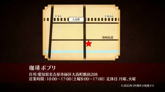 6月5日(日)に放送された第23話では、名古屋・錦の喫茶店「珈琲にしき」が舞台となりました。