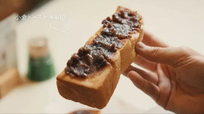 純平は、追加で小倉トースト(400円)も注文。こんがりと焼けたトーストに、たっぷりの粒あん。その素朴な味わいに、純平も顔がほころび、食べる手が止まらないという様子でした。