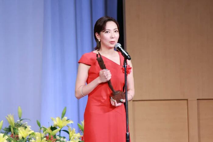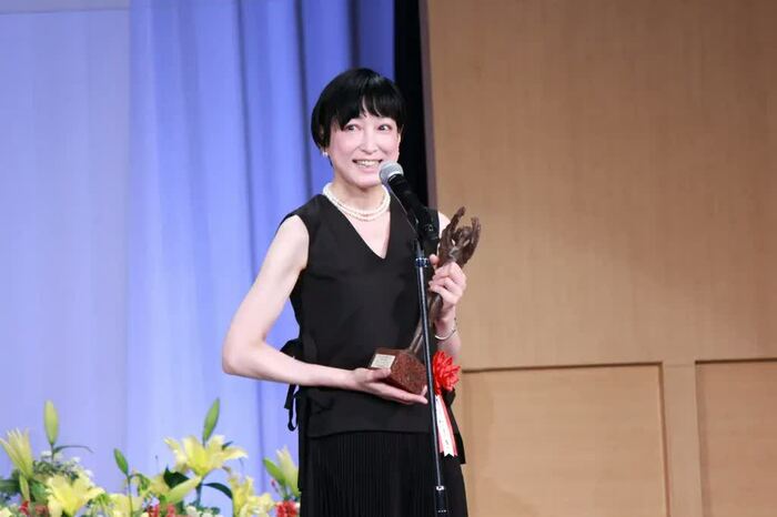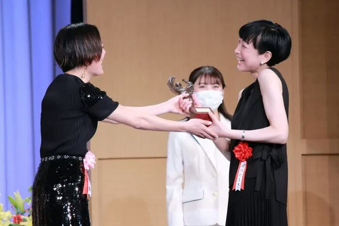 緒川さんは、プレゼンターの鈴木杏さんから、ブロンズを受け取り、「今日久しぶりに、鈴木杏さんの顔を見て、真っ先に浮かんだ言葉は、『信頼感』です。彼女は、共演者として作品を作っていても、観客として作品を拝見していても、信頼感で満たしてくれます。その信頼感が生むものは、とても大きなもので、共演者としてもたくさん手を引いてもらいました」とニッコリ。