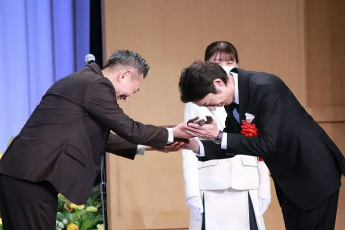 高橋さんは、プレゼンターの山崎一さんから笑顔でブロンズを受け取ると、「自分の人生においてほとんどの時間をお芝居に携わらせていただきました。最優秀男優賞をいただけたことは、今後の僕の指針になります。ありがとうございます」と感謝。