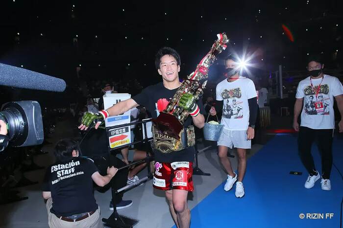 ベルトを手にした海選手は「大晦日は本当に悔しくて、必死に練習してきました。しっかり準備をしてきたので、やってきたことは間違っていなかった」と力強く語った。
