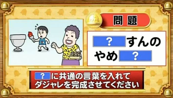 最初は「脳ミングアップクイズ」から、ダジャレ穴埋め問題。「?」に共通する言葉を入れてダジャレを完成させてください。