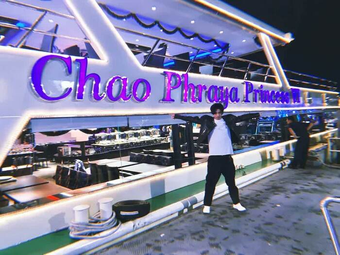 これは2018年か2019年の年末、家族旅行で行ったタイで撮ったものです。カウントダウンクルーズに乗船したときに、両親と姉は下のパーティスペースでショーを見て、僕はデッキでひとり、花火を見ながらお酒を飲んでいたのですが、近くにいた外国人のお姉様方がこちらに視線を送っているのがわかるんです。