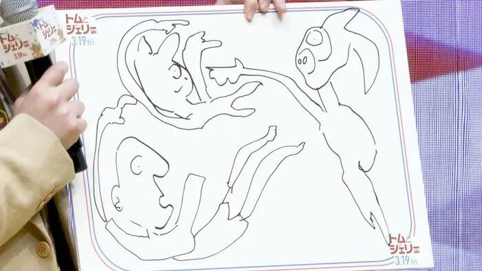イベントの中盤には、ゲスト3人が「トムとジェリーと一緒にやりたいこと」をその場でイラストにして紹介することに。3人にはフリップと黒ペン1本が渡された。