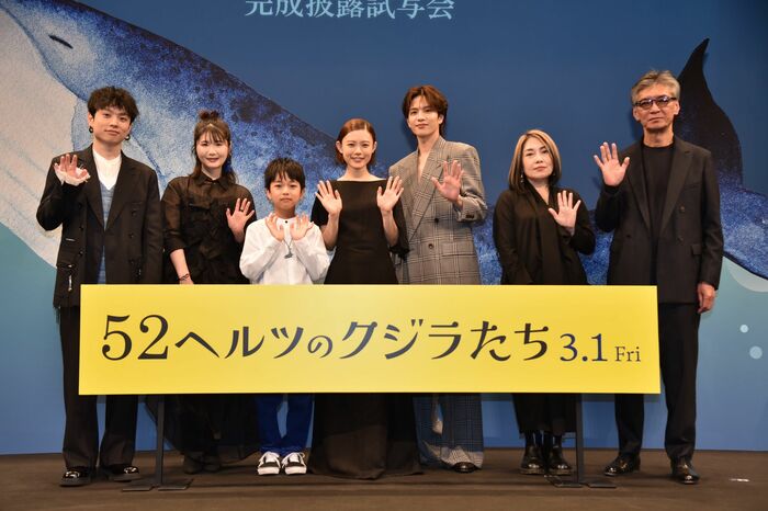 杉咲花さんが主演を務める映画「52ヘルツのクジラたち」の完成披露試写会が、2月13日に行われ、杉咲さん、志尊淳さん、小野花梨さん、桑名桃李さん、主題歌を担当した石原慎也さん(Saucy Dog)、原作者の町田そのこさん、成島出監督が登壇しました。