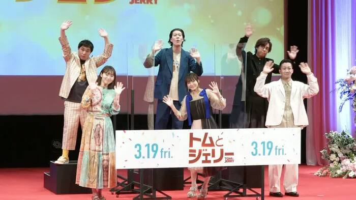 3月3日(水)映画「トムとジェリー」プレミアムイベントが行われ、ゲストに霜降り明星(せいや、粗品)と飯豊まりえ、声優の水瀬いのり、日野聡が登壇した。