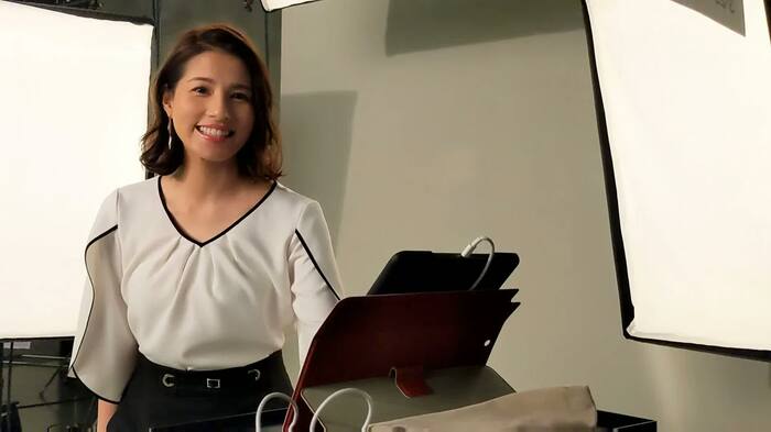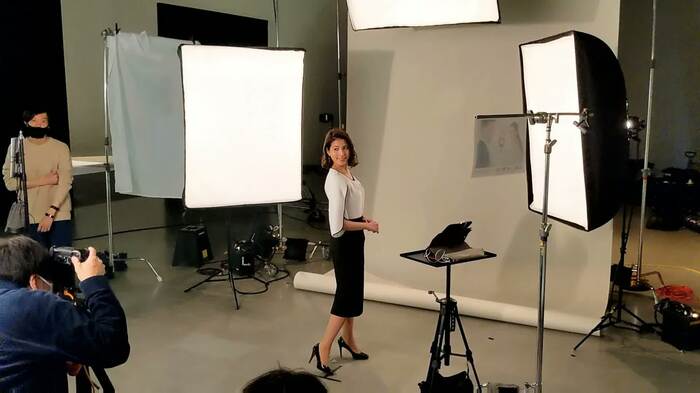 その後は、笑顔を絶やさず、ビシッとポーズを決めていく永島アナ。スタッフから「かわいい!」「キレイ!」の声が上がるが、取材班に対しこっそりと「難しい…」とこぼす場面も。それでも、予定よりも早く撮影を終えた。