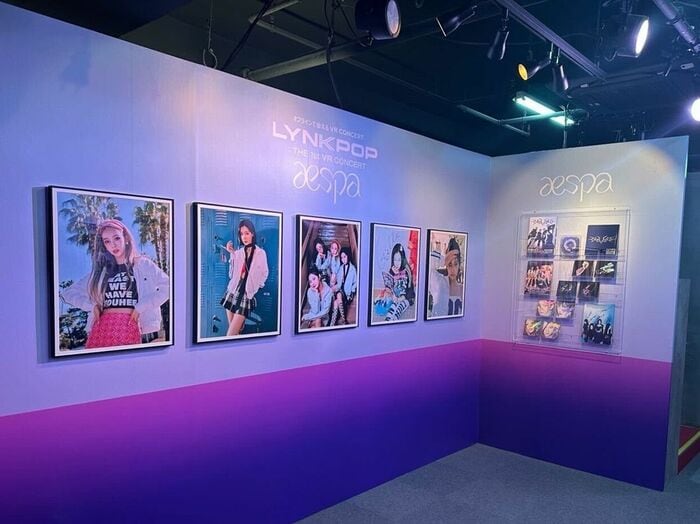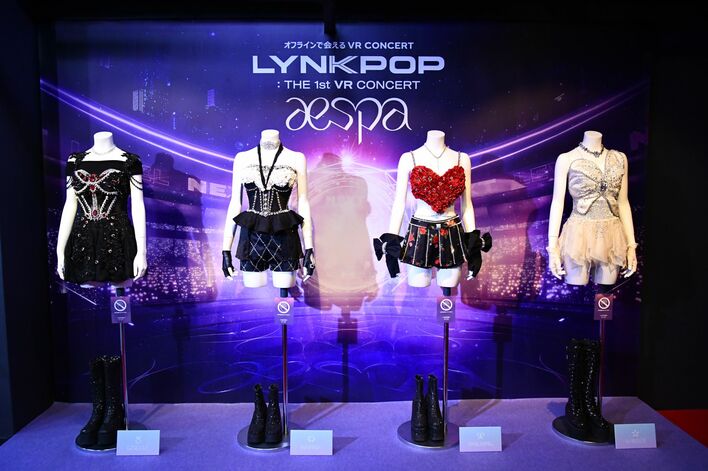 4階フロアの会場に入ると、aespaのこれまでの活躍を感じられるミュージックビデオやメンバーの衣装、写真などが飾られたエリアが広がります。