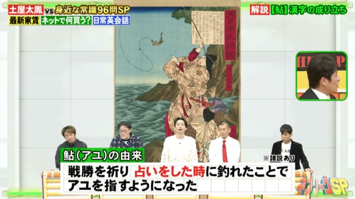 魚編の漢字を書く問題では、林修先生が「鮎」の漢字の成り立ちを解説しました。