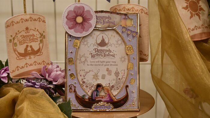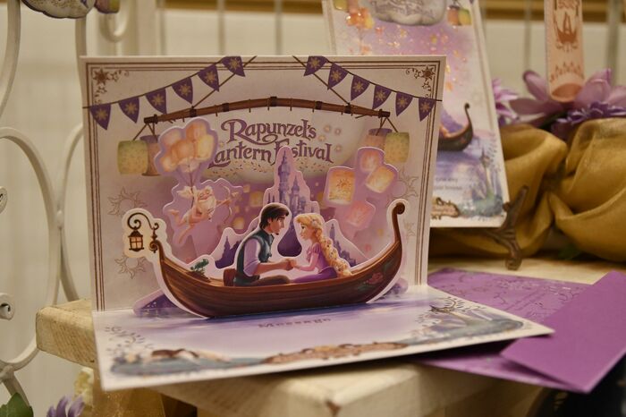 「ラプンツェルの森」にできるアトラクション「ラプンツェルのランタンフェスティバル」をテーマにしたグッズは、ロマンティックなボートの旅が描かれています。
