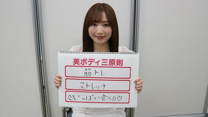 写真集の撮影に向けての体づくりをした際に大切にした「美ボディ三原則」を聞くと、筋トレ・ストレッチ・いっぱい食べると答えた青山さん。