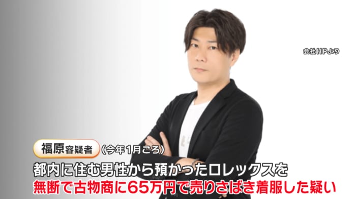 福原容疑者は、2024年1月ごろ、「トケマッチ」のサービスとして、東京都内に住む男性から預かった高級腕時計ロレックス1本を、無断で大阪の古物商に65万円で売りさばき、着服した業務上横領の疑いがもたれています。