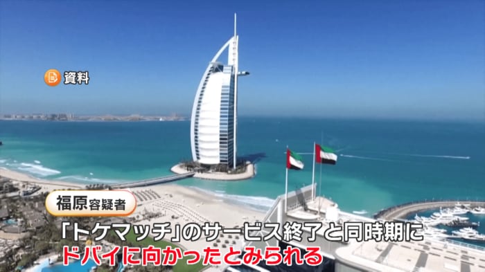 福原容疑者は「トケマッチ」のサービスを終了したのと同じ時期に、成田空港からUAE=アラブ首長国連邦のドバイに向かったとみられていて、警視庁は今後、国際手配する方針です。