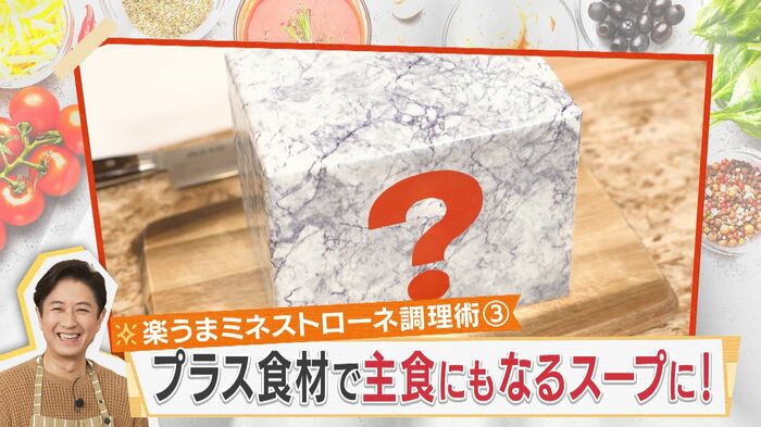 谷原流!楽うまミネストローネ調理術 ポイント③「『プラス食材』で食べ応えと栄養UP!」