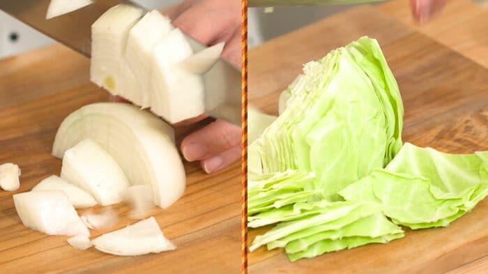 タマネギ・キャベツ・ベーコン…食べやすいサイズに