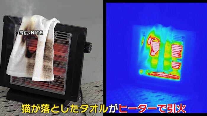 さらに、猫が落としてしまったタオルが、使用中のヒーターの上に落下。引火して燃え上がってしまうケースも。